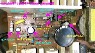 8.يتم توصيل الكهرباء علي كارتة بور الرسيفر ويتم تركة فترة حتي يتم شحن المكثف 450/47 .
